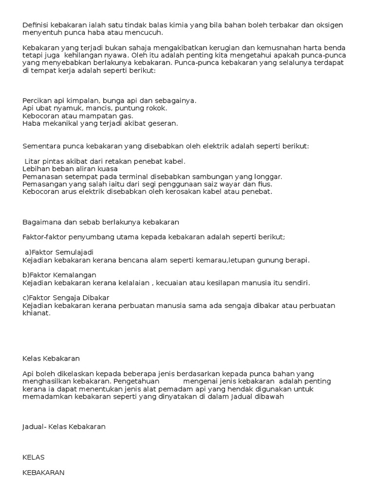 1pencegahan Kebakaran Dan Rawatan Awal