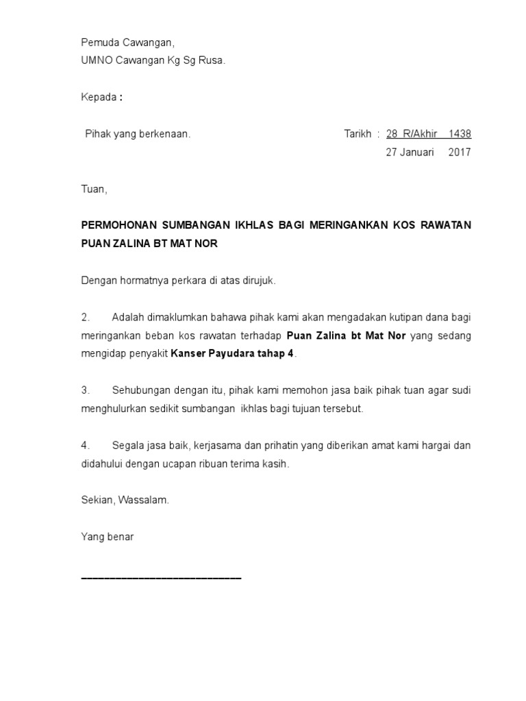 Surat Mohon Sumbangan Ikhlas Kos Rawatan Pdf